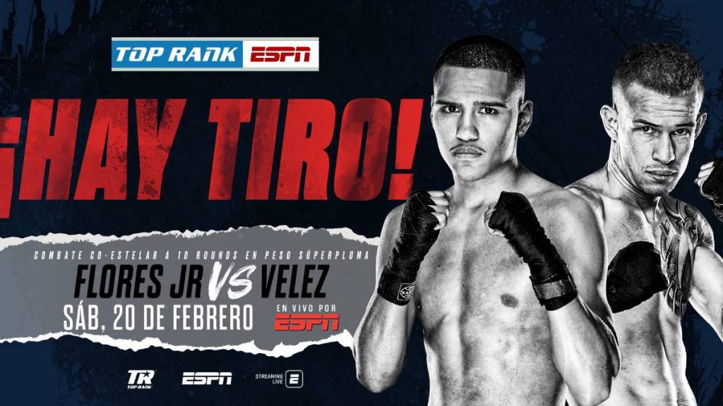 LAS VEGAS – El invicto peso superpluma Gabriel Flores Jr. peleará contra el ex retador de título mundial Jayson Vélez en un choque a 10 asaltos el sábado 20 de febrero, como el combate co-estelar del tan esperado enfrentamiento mexicanos entre el campeón mundial superpluma del CMB Miguel “Alacrán” Berchelt y el invicto ex campeón de peso pluma Oscar Valdez.