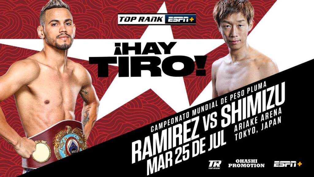 Ramírez se enfrentará al contendiente japonés Satoshi “Diamond Left” Shimizu el martes, 25 de julio en la Ariake Arena en Tokio. Ramírez-Shimizu será el combate co-estelar del choque titular de peso junior pluma entre el campeón CMB/OMB de Filadelfia, Pensilvania y el rey libra-por-libra de Japón Naoya “Monster” Inoue.