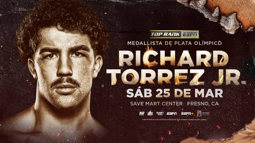 FRESNO, California — Richard Torrez Jr. no está desperdiciando tiempo. El medallista de plata olímpico, quien obtuvo una victoria por nocaut técnico en el primer asalto ante James Bryant el viernes por la noche en la Desert Diamond Arena, regresará el sábado, 25 de marzo en el Save Mart Center de Fresno, California. Torres-Jake Jr. abrirá la velada de tres combates televisadas encabezada por el combate de peso junior welter entre José Ramírez y Richard “RC” Commey y la batalla unificatoria de peso mínimo entre la campeona de la AMB Seniesa Estrada y la monarca del CMB Tina Rupprecht.
