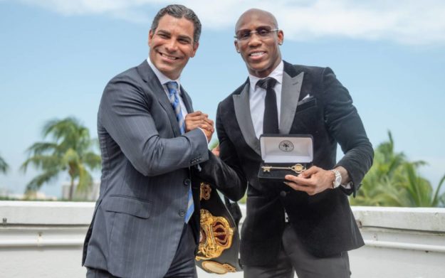MIAMI – 7 de Septiembre, 2021 – El cubano Campeón Mundial del Peso Welter de la AMB Yordenis Ugás fue honrado con la “Llave de la Ciudad” de Miami por el Alcalde Francis Suarez durante una ceremonia que se celebró este martes por la tarde en el ayuntamiento del Alcalde Suarez.