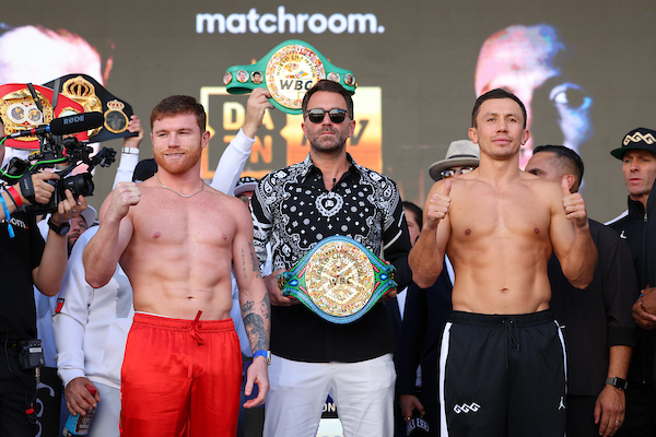 Álvarez, de 32 años, volvió a bajar a la división de peso súper mediano para enfrentarse a Golovkin. El nativo de Guadalajara pesó 174½ libras en su última pelea, una derrota por decisión unánime en 12 asaltos ante el campeón de peso semipesado de la AMB Dmitry Bivol (20-0, 11 KOs) el 7 de mayo en T-Mobile Arena.