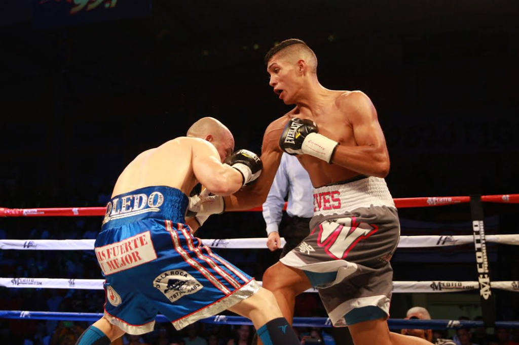 Peleando en las 135.00 libras, Nieves dispuso al minuto del tercer asalto del aguerrido ‘Mikito’ Soto (ahora 12-7 y 12 nocauts) para mejorar su marca a 9-1-1 y cinco nocauts en la pelea programada a un máximo de ocho episodios.Soto no pudo seguir combatiendo por decisión de la doctora Rosilvia Muñiz, de la Comisión.