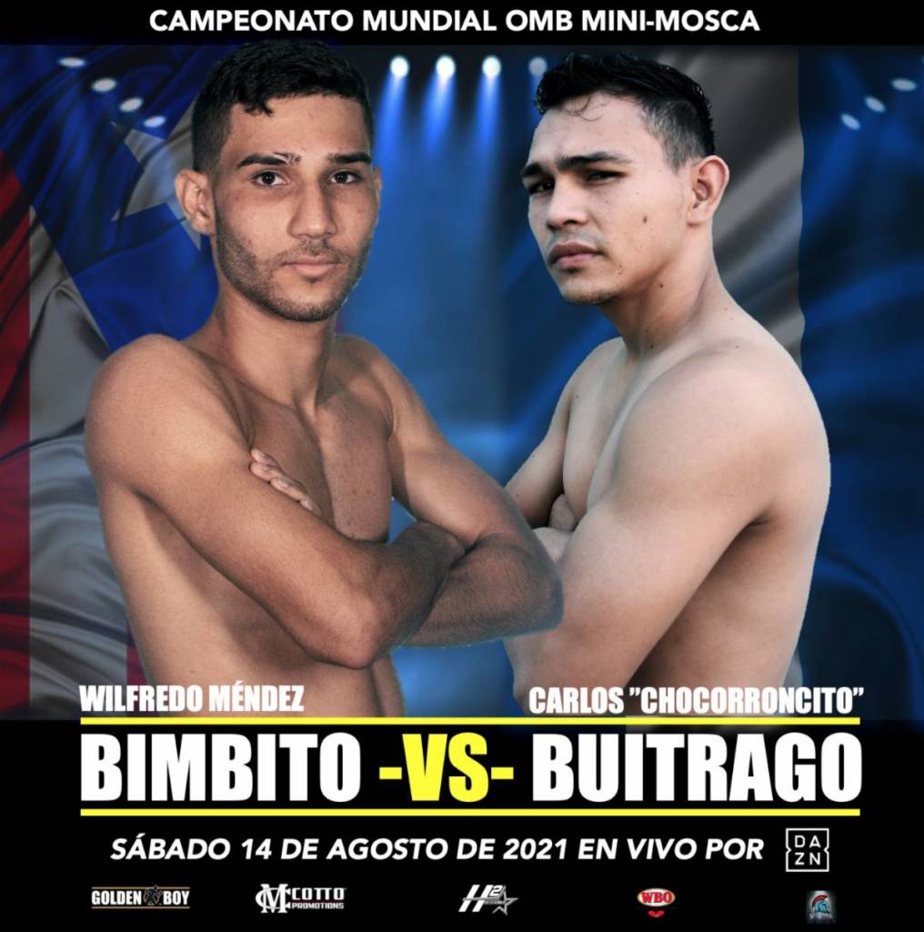 Caguas, PUERTO RICO ﹣ El campeón mundial míni mosca de la Organización Mundial de Boxeo el puertorriqueño Wilfredo ‘Bimbito’ Méndez (16-1, 6KOs) realizará su tercera defensa titular ante el aguerrido contendor mundial nicaraguense Carlos ‘Chocorroncito’ Buitrago el sábado 14 de Agosto en The Star, en Frisco Texas y será transmita en exclusivo por DAZN.
