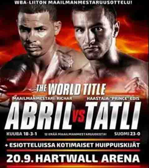 abril2Prensa AMB. 20 de septiembre.-  El cubano Richar Abril se mantiene como campeó del peso ligero 135 libras de la Asociación Mundial de Boxeo, tras imponerse al filandés Edis Tatli en la pelea realizada este sábado en Hartwall Arena de Helsinki.