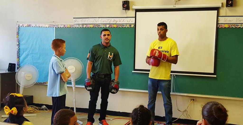 Guaynabo, Puerto Rico – Los prometedores boxeadores puertorriqueños Alberto ‘El Explosivo’ Machado (15-0, 13 KO) del residencial Jardines de Monte Hatillo y Héctor ‘Pipa’ Marrero (2-0, 2 KO) de Las Parcelas Falú, ambos de Río Piedras, estuvieron impactando con su mensaje motivacional a los niños de ‘El Centro Educativo Joaquina de Vedruna’, localizado en el pueblo de Guaynabo.