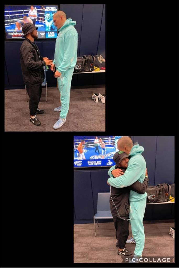 En la foto, otro ucraniano exitoso en el campo profesional, Vasyl Lomanchenko celebra la victoria de su amigo. Un dato interesante es que ambos fueron entrenados por el padre de Vasyl llamado Anatoly. Quizás eso explique porque ambos son tan buenos.