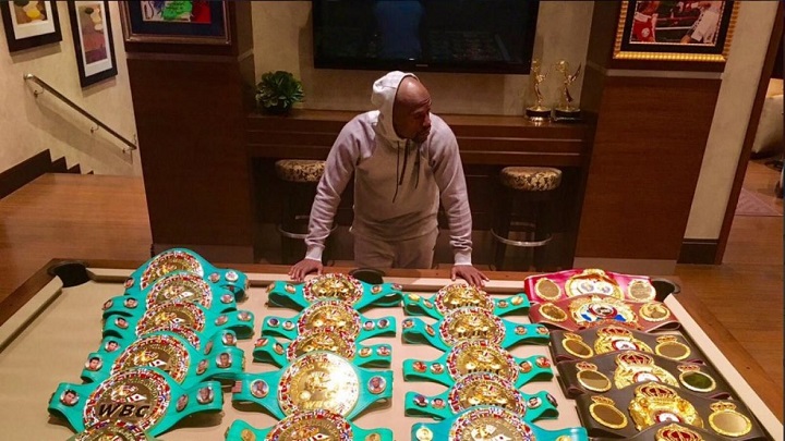 Creo que debe ser lo justo los homenaje se debe hacer en vida para que cuando muera mayweather se fue como el mejor hizo lo que ningun otro boxeador pudo hacer creo se merece que los cinturones lleven su cara porque es el mejor