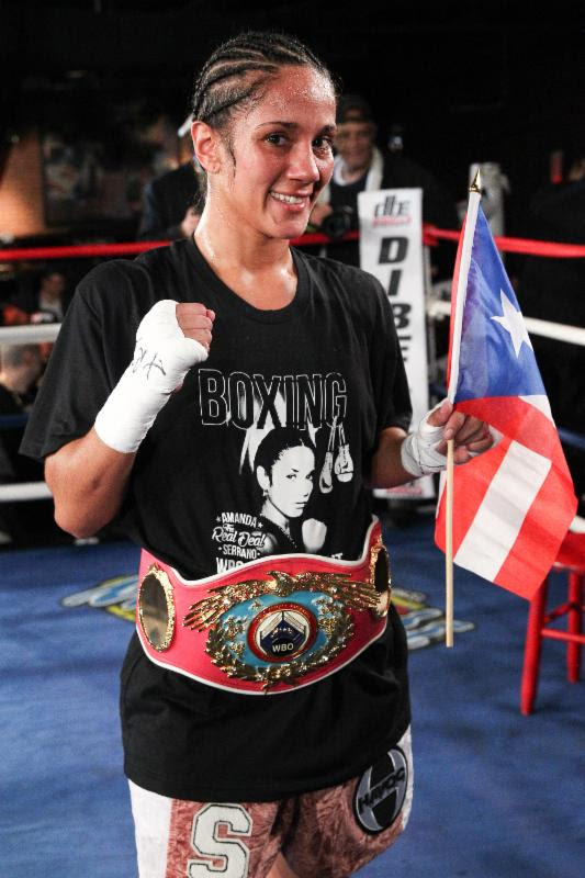 In 2011, Serrano won the IBF world female junior lightweight title with a second-round stoppage of Kimberly Connor in New York. Traveling to Sweden in April 2012, Serrano suffered her only defeat via 10-round decision to the unbeaten hometown favorite Frida Wallberg for the WBC junior lightweight world title. Moving up to lightweight in 2014, Serrano seized the WBO world female 135lb. title on August 15, with a sixth-round knockout over Maria Maderna in Argentina. Signing with DiBella Entertainment in 2016, Serrano demolished Canadian Olivia Gerula inside one round on February 17, to claim the WBO world female featherweight title. She then retained that belt with a first-round stoppage of Colombian Calista Silgado on July 30, to become the first female boxer to defend a world title at Barclays Center, in Brooklyn, NY.