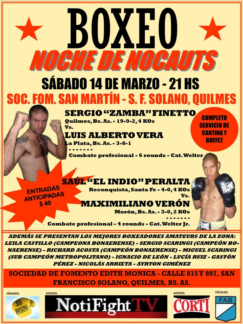 Una noche con promesa de nocauts se vivirá este sábado en la Sociedad de Fomento Edith Mónica de San Francisco Solano, Quilmes, Buenos Aires, con dos combates profesionales en una nueva producción de JEB Boxing SRL.