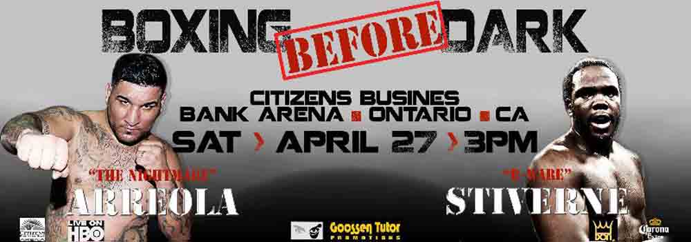 Sherman Oaks, CA – The beat goes on. Riverside’s Chris “The Nightmare” Arreola (35-2, 30 KOs) will fight Bermane Stiverne (22-1-1, 20 KOs) of Las Vegas on Saturday, April 27 at the Citizens Business Bank Arena in Ontario, California said Dan Goossen, president of Goossen Tutor Promotions.