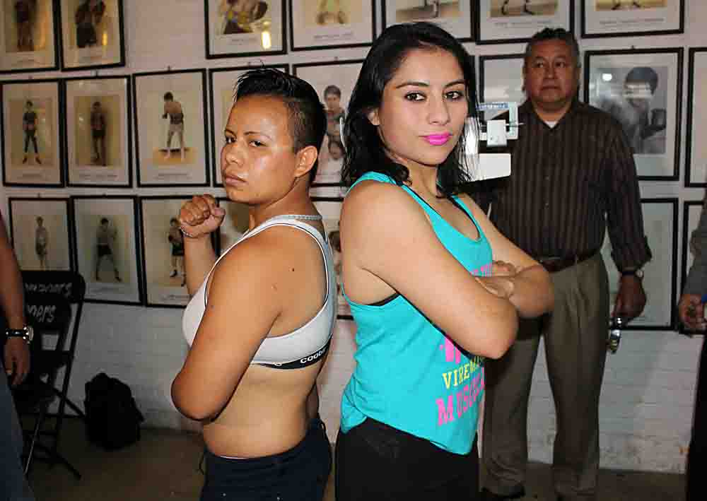 En lo que fue la ceremonia de pesaje, efectuado en las instalaciones de la Comisión de Box, Miriam Ávila, que es entrenada por el ex peleador Daniel Domínguez, y Maria Elena Villalobos, no tuvieron problema alguno con la báscula. Ávila marcó un tonelaje de 56.700 kilogramos y Villalobos 55.600 kilogramos.