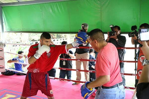 El mexicano Juan “Churritos“ Hernández ya se encuentra de lleno en la promoción de su combate en Tailandia, pues esta mañana se presentó al entrenamiento para los medios de comunicación especializados donde lució en gran forma física previo a la disputa del título absoluto mosca del Consejo Mundial de Boxeo este sábado en Bangkok frente al local Nawaphon Nakornloung.