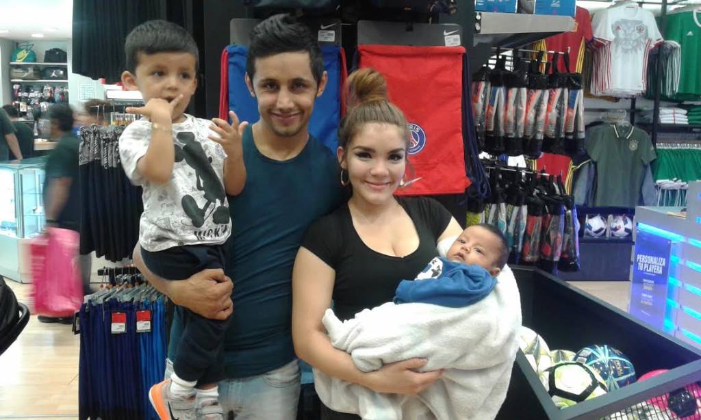 Moisés Fuentes junto con su bella esposa Janine y sus dos pequeños hijos.