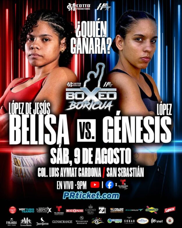 La segunda pelea profesional de Belisa López de Jesús está programada para el sábado 9 de agosto en el Coliseo Luis Aymat en San Sebastián, donde enfrentará a Génesis López en un combate a 4 asaltos sión que promete acción desde el primer campanazo.