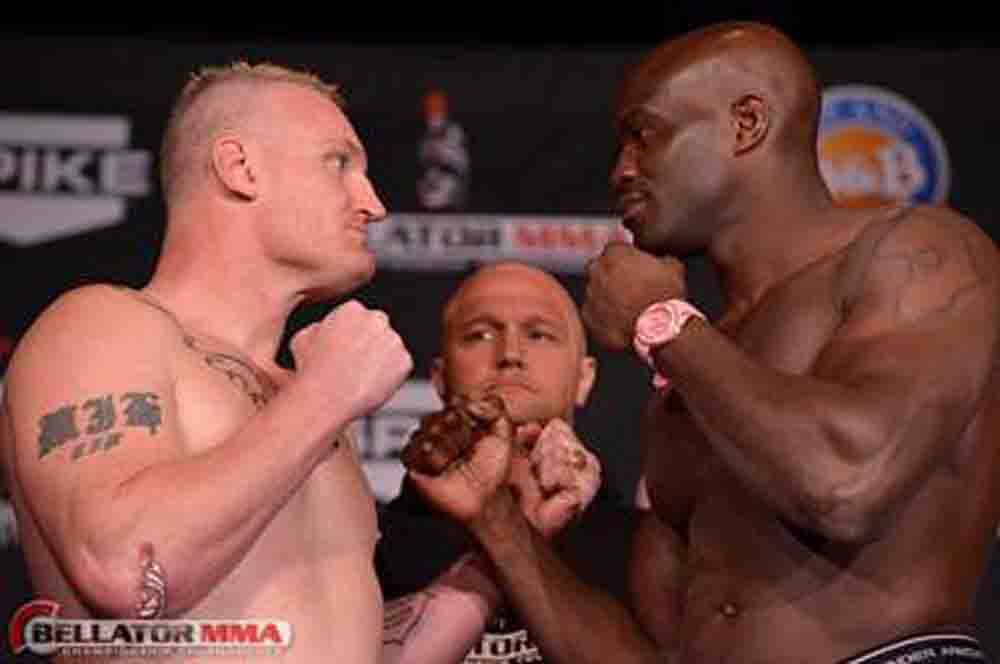 Peter_Graham_Cheick_KongoThackerville, OK. (November 7, 2013) – The Bellator MMA weigh-ins have been completed from the Mist Nightclub inside the WinStar World Casino in preparation for Bellator MMA’s November 8th event, which will showcase the Bellator Heavyweight, Middleweight and Bantamweight Tournament Finals.
