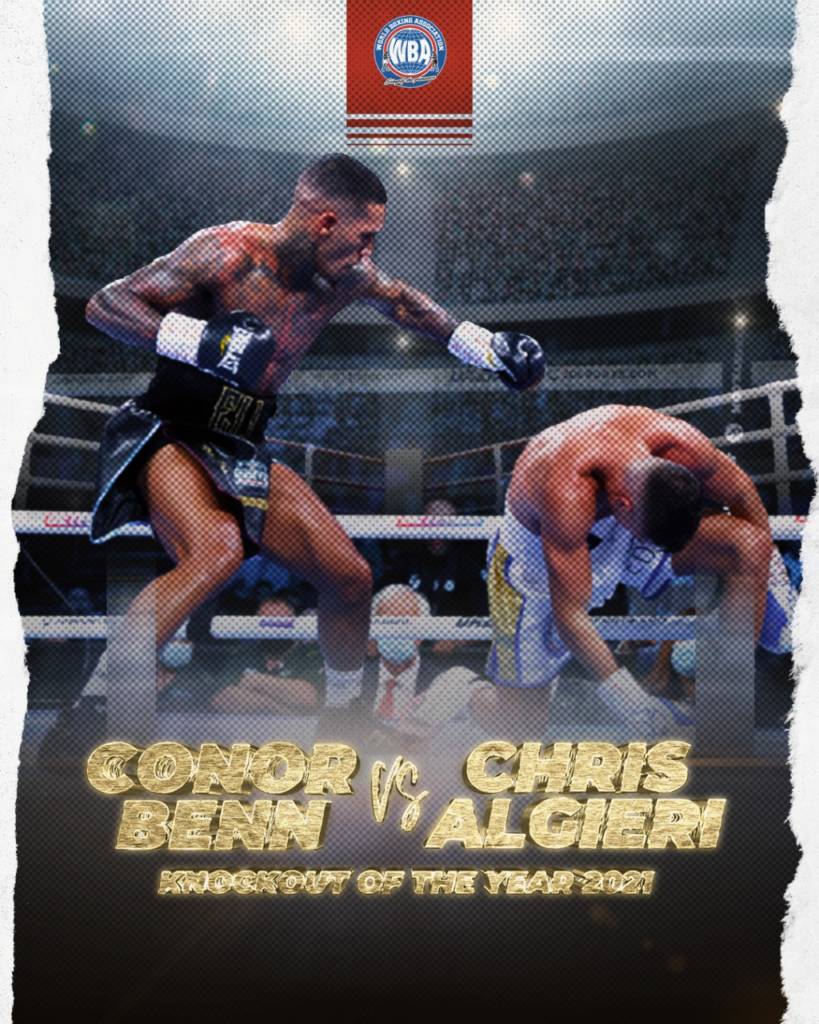 El nocaut del año es uno de los premios más interesantes de este 2021 debido a la calidad de los nominados. Aunque no fue una tarea fácil, el peleador Conor Benn se quedó con el reconocimiento por parte de la Asociación Mundial de Boxeo (AMB) por su victoria sobre Chris Algieri el 18 de diciembre pasado, en Liverpool.