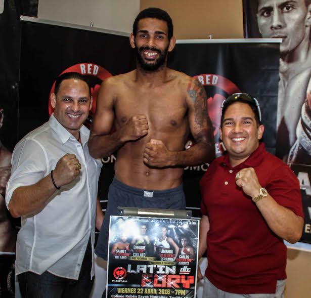 San Juan, PUERTO RICO – Cumpliendo con el peso reglamentario a una semana de su combate por el campeonato FECARBOX mediano del Consejo Mundial de Boxeo (CMB), el olímpico de Londres 2012, Enrique ‘Kikin’ Collazo (8-0-1, 7KO’s), marcó 166.2 libras, esto por debajo del 5% (168 libras) establecido para el combate semiestelar de la cartelera ‘Latin Fury’, a celebrarse el viernes, 22 de abril en el Coliseo Rubén Zayas Montañez de Trujillo Alto.