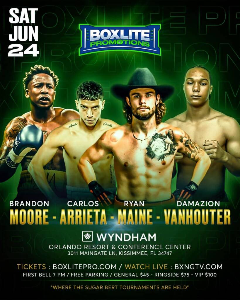 Orlando, FLORIDA – En lo que promete ser una noche emblemática para el boxeo profesional en la Florida Central, Boxlite Promotions celebrará su primer aniversario este sábado, 24 de junio en el Wyndham Orlando Resort & Conference Center en Kissimmee.