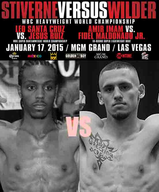 La explosiva velada del sábado 17 de enero, se destaca por el esperado enfrentamiento entre el tozudo campeón mundial de peso pesado Bermane “B. Ware” Stiverne(24-1-1, 21 nocáuts), de Las Vegas pero originario de Haití, frente al invicto retador mandatorio Deontay “The Bronze Bomber” Wilder (32-0, 32 n nocáuts) de Tuscaloosa, Alabama. Además, Leo “Terremoto” Santa Cruz (28-0-1, 16 nocáuts) el favorito de las multitudes y monarca supergallo del Consejo Mundial de Boxeo (WBC por sus siglas en inglés) pone en juego su título y récord invicto en un combate a 12 asaltos contra el tozudo mexicano Jesús “Estrellita” Ruiz (33-5- 5, 22 nocáuts) en el duelo co estelar.