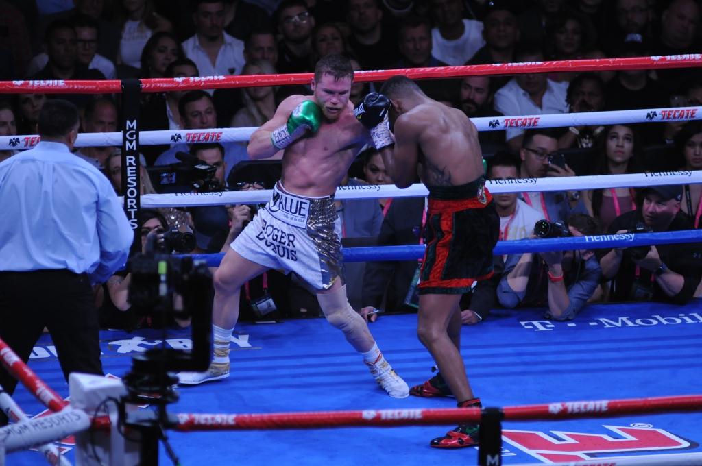 Híjole, siempre que hay un evento donde se involucra a Canelo sí que hay respuesta inmediata y fueron 20,203 fanáticos presentes en el T-Mobile el 4 de mayo, Daniel entró al ritmo de una rolita dándole honor a su tierra, New York. Saúl Álvarez con Zarape diseñado con el águila parada en un nopal devorando una serpiente, con motivo del fin de semana que se celebra el 5 de Mayo que fue la épica Batalla de Puebla. Michael Buffer dijo su clásico ¡Let’s get ready to Rumble! Y el canto de la vaca inundo el ambiente cuando se presentó a Daniel Jacobs y por lo contrario el estruendo del trueno cuando se pronuncio el nombre del tapatío que sigue escribiendo su propia historia. Desde el inicio Canelo puso en práctica el acoso incesante pero Jacobs resulto demasiado precavido eludiendo el pronóstico del encerrona al toma y daca que se esperaba. Y Jacobs marcaba su raya y cuando cambio de guardia convencional a zurda fue cuando Canelo empezó acertar con más claridad. La estrategia de Daniel de no entrarle al toro por los cuernos y eludir el toma y daca convirtió el combate en una pelea de rutina con el clásico ni dan pelea ni dejan pelear, y su prudencia pudo más que su ataque a mansalva, aunque si utilizaba combinaciones peligrosas y tiro un volado que Canelo absorbió como si nada y confesaría en pos conferencia