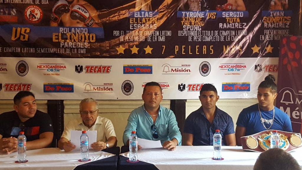 En conferencia de prensa el promotor y matchmaker de A&T, Eduardo “Bombón” Kantún, acompañado del vicepresidente de la Comisión de Boxeo de Mérida (CBM), Manuel Najera Palaviccini presentó el programa que incluye una pelea por el vacante cetro latino de la OMB de peso medio, entre el local Elías Espadas (15-3-0 con 10 kos) y el aquicalidense José Luis “El Caras” Zúñiga (14-2-1 10 kos).