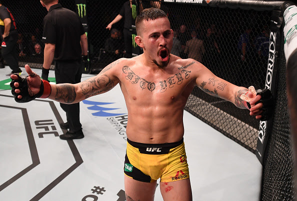MELBOURNE, AUSTRALIA - NOVEMBER 27: Marlon Vera of Ecuador reacts after the conclusion of his featherweight bout against Ning Guangyou of China during the UFC Fight Night event at Rod Laver Arena on November 27, 2016 in Melbourne, Australia. (Photo by Jeff Bottari/Zuffa LLC/Zuffa LLC via Getty Images)