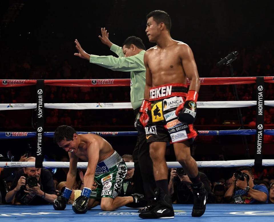 Román González noquea a Edgar Sosa en el segundo round de su pelea por el título mundial mosca del CMB, el 16 de mayo. Mark Ralston AFP/Getty Images
