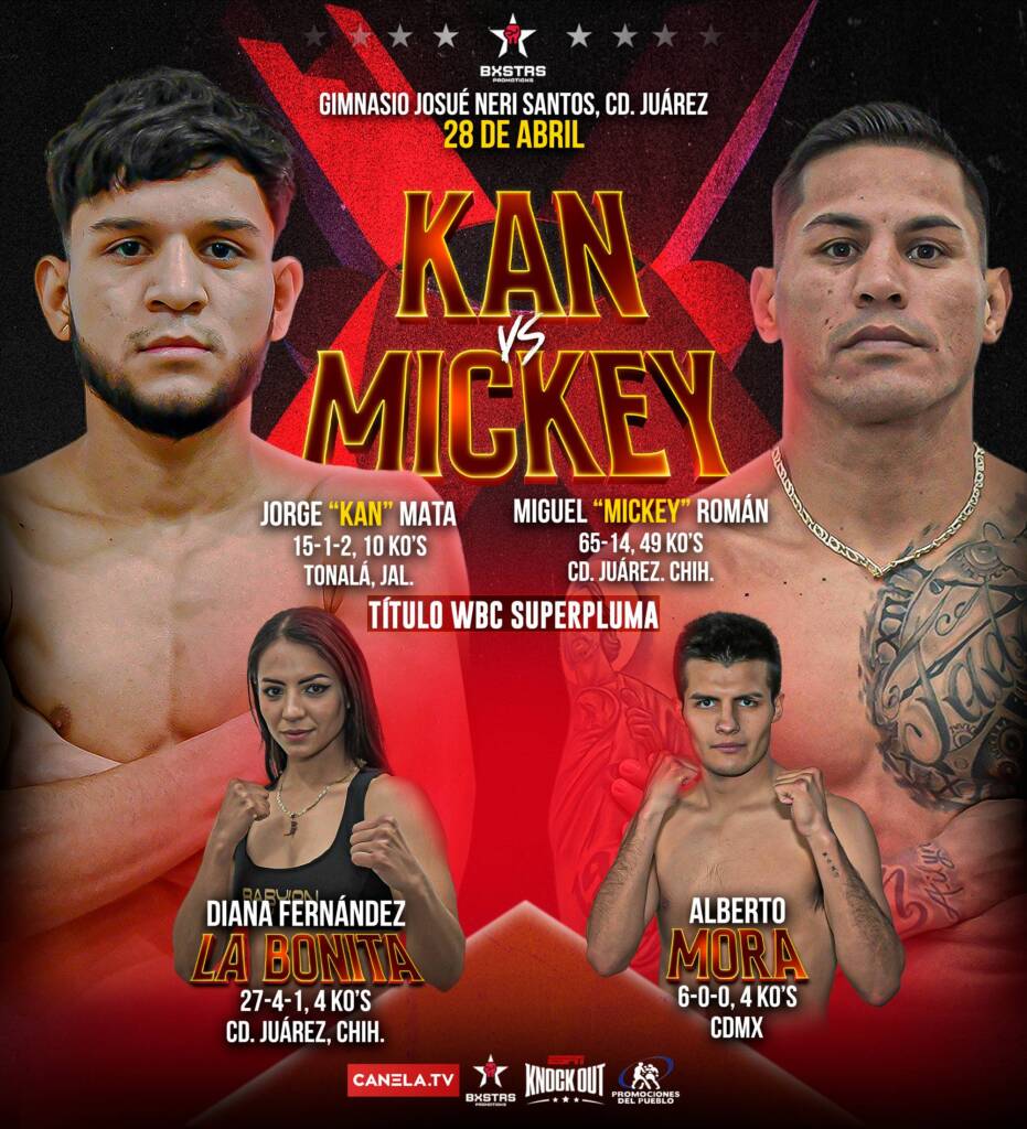 En un duelo generacional, pero que a la vez será un choque de poder a poder, el joven prospecto jalisciense, Jorge “Kan” Mata, se enfrentará al probado y siempre emocionante peleador chihuahuense, el experimentado Miguel “Mickey” Román, en el combate estelar de la gala boxística que presentará Bxstrs Promotions en colaboración con Promociones del Pueblo el viernes 28 de abril en el gimnasio “Josué Neri Santos” de Ciudad Juárez, con transmisión en vivo a toda Latinoamérica por ESPN KnockOut y la plataforma Canela TV. para Estados Unidos.