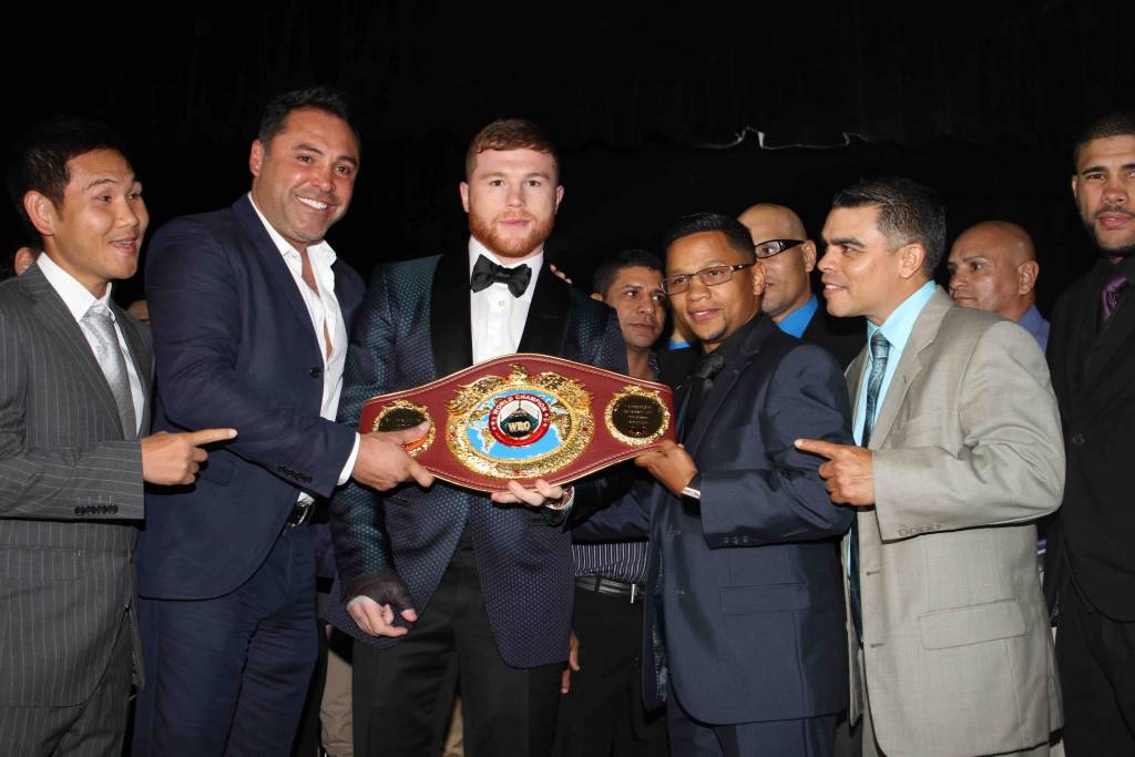La noche sirvió para realizar la entrega del cinturón Jr. Mediano (154 libras) a Saúl ‘Canelo’ Álvarez, quien se coronó el pasado mes de septiembre en Dallas, Texas, al destronar a Liam Smith.