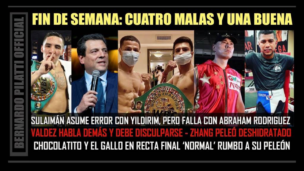 De lo pendiente durante el fin de semana, tenemos cuatro comentarios sobre episodios negativos y un restante sobre lo positivo en los días por llegar. Sulaimán asumió el error de clasificar a Yildirim, pero lo hizo sin mencionar la incongruencia de sus contradicciones y en otra mala noticia asociada, fue un desatino mantener la preliminar del sábado y peor que eso, llevar a Abraham Rodríguez como rival de McWilliams Arroyo, lo explicamos en el video.