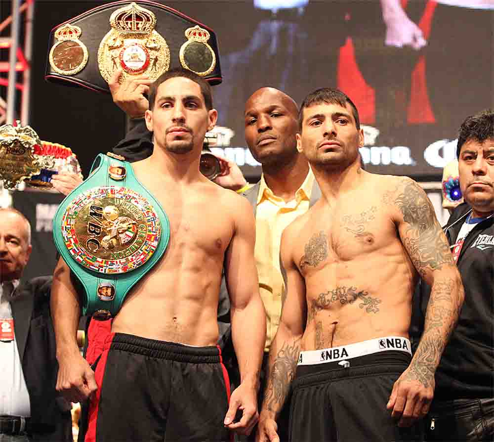Como ‘antesala’ al combate Mayweather ‘versus’ Álvarez este sábado 14 de septiembre de 2013, se estarán enfrentando el descendiente de puertorriqueños Danny García (izquierda) y el argentino Lucas Matthysee (derecha). De acuerdo a los entendidos en la materia, el encuentro podría resultar un peleón dado a los estilos de ambos púgiles.