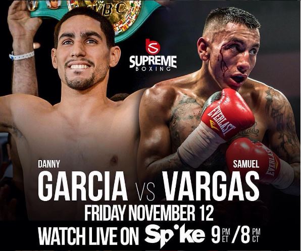 El invicto norteamericano campeón mundial en dos divisiones Danny Garcia (32-0, 18KO) se enfrentará al desconocido colombiano/canadiense Samuel Vargas (25-2-1, 13KO) a 10 rounds en peso Welter sin título en juego (ya que el retador no está clasificado en ningún organismo), en el Liacouras Center de Philadelphia, Pennsylvania el próximo 12 de Noviembre con transmisión de Spike TV para la serie PBC.
