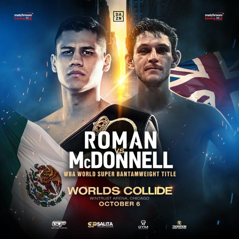 ORANGE, Calif. – Danny Roman (25-2-1, 9 KOs), the current WBA super bantamweight champion, will defend his crown against the No. 4 ranked challenger in Gavin McDonnell (20-1-2, 5 KOs) on Saturday, Oct. 6 from the Wintrust Arena in Chicago.