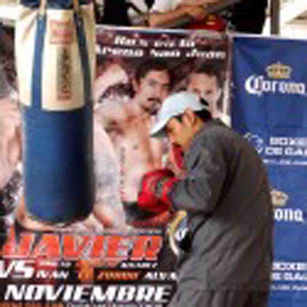 Posteriormente, los boxeadores profesionales pasaron a la zona de aparatos para descargar sus disparos al costal, a la pera loca y a la pera fija; en medio de su festejo de Halloween, los jóvenes fueron dirigidos por De los Santos y Soriano en el golpeo a los aparatos.