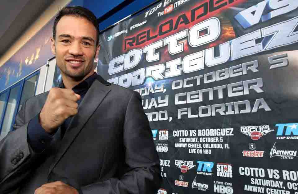 DELVIN RODRIGUEZ durante una conferencia de prensa para su pelea contra Miguel Cotto el 5 de octubre del 2013 en Orlando. | Chris Farina Top Rank