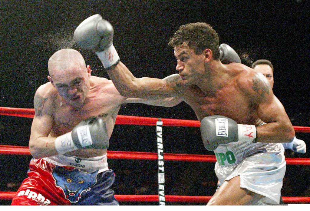 Inolvidable. Jorge Rodrigo Barrios, golpe a golpe con el brasileño Acelino Freitas en 2003. (AFP)