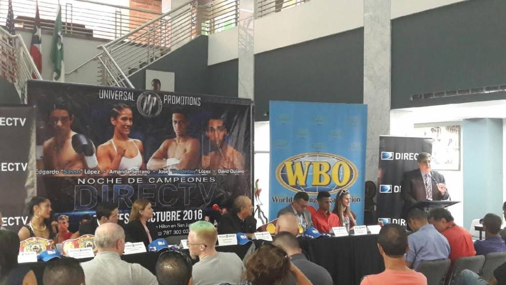 Guaynabo, PR – Éste jueves en el Museo del Deporte en Guaynabo, se llevó a cabo la segunda conferencia de prensa de la cartelera “Noche de Campeones DIRECTV”. La actividad pugilística se trasladará al Hotel Caribe Hilton de la ciudad capital, como parte de la vigesimonovena Convención Anual de la Organización Mundial de Boxeo (WBO, por sus siglas en inglés) el martes 18 de octubre.