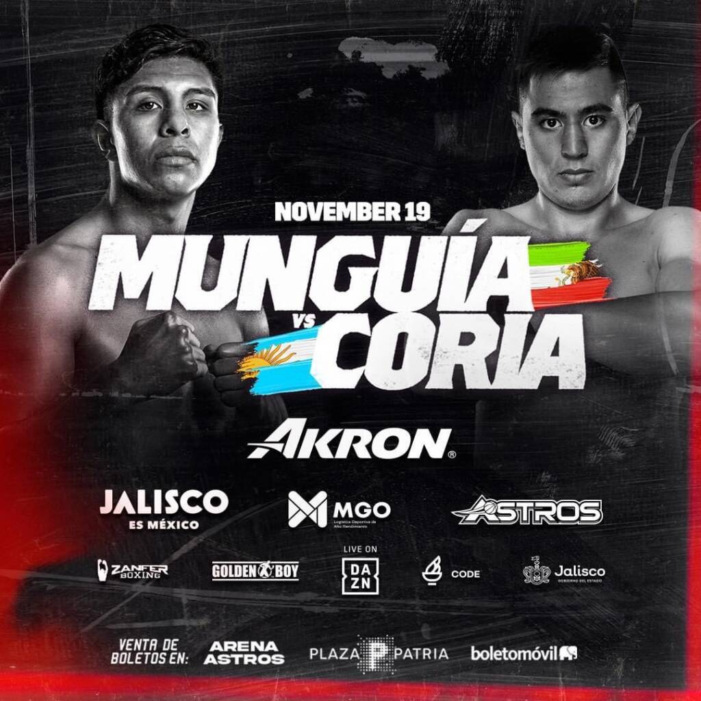El invicto peleador fronterizo, Jaime Aarón Munguía Escobedo, cerró sin problema alguno la etapa fuerte de su preparación de cara al compromiso que sostendrá con un complicado oponente como lo es el sudamericano Gonzalo Gastón Coria (21-5-0, 8 Ko’s), peleador que gusta de ofrecer emotivos combates, dentro de la cartelera que organiza Zanfer Boxing y Golden Boy, con el apoyo del Gobierno del Estado de Jalisco, a través de Code Jalisco, y Akron y MGO Logística Deportiva de Alto Rendimiento.