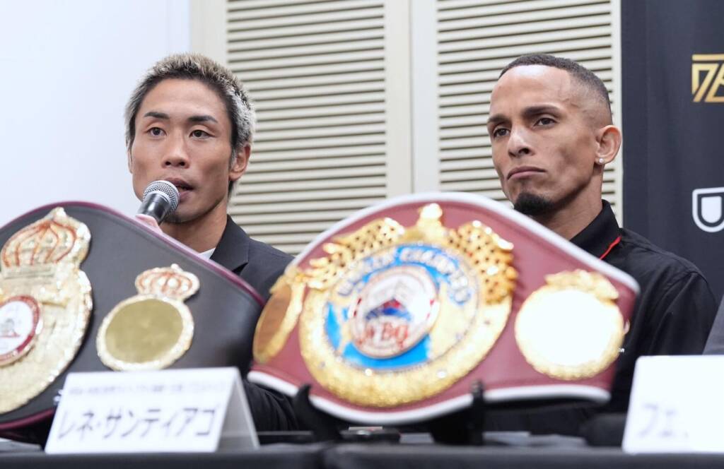 Masataka Taniguchi (izquierda) y René “El Chulo” Santiago en la conferencia de prensa del miércoles en Tokio. (Suministrada / All Star Boxing)