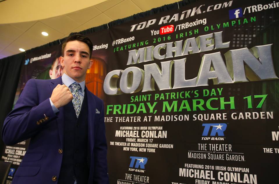 “Es un honor y un privilegio poder hacer mi debut profesional en la Mecca del Boxeo que es el Madison Square Garden, pelear en la arena más famosa del mundo en mi debut profesional y en el Día de San Patricio es algo que nunca soñé que podría ser posible,” dijo Conlan. “Pero gracias a mi equipo y a Top Rank, está sucediendo. Estoy sumamente agradecido por la oportunidad y espero hacer el Día de San Patricio en el El Garden un evento anual. Tengo la esperanza de una nación detrás de mi y no puedo esperar a darle una gran demostración a Irlanda en el Día de San Patricio.”