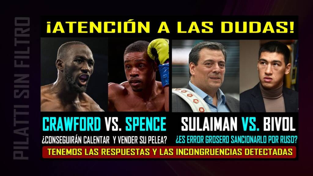 Son dos dudas de miércoles las que destacamos en este video. La fría promoción previa de Spence vs. Crawford y la controvertida sanción del CMB a Dmitry Bivol por su nacionalidad rusa. Para las dos tenemos respuestas crudas, datos reales y en el caso de Sulaimán vs. Bivol, le sumamos incongruencias detectadas, ante la doble vara para medir a los rusos.