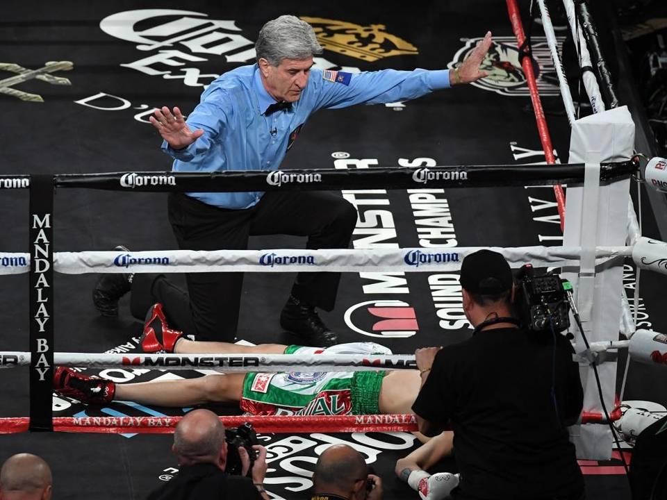 MOISES FLORES tras recibir el controversial golpe de Guillermo Rigondeaux el 17 de junio. Ethan Miller Getty Images