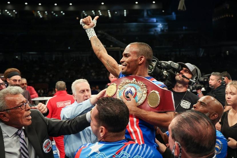 Jonathan González celebra en medio del cuadrilátero luego de su segunda defensa titular exitosa, ambas por decisión unánime. (Suministrada)
