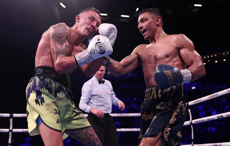 López también fue muy agresivo en el segundo. Hubo un choque de cabezas, con López sufriendo un corte por encima del ojo izquierdo. Una ronda de toma y daca en el tercero. Ambos estaban lanzando golpes sólidos. El cuarto vio a López golpeando con muchos golpes fuertes para anular el ritmo de trabajo de Warrington.