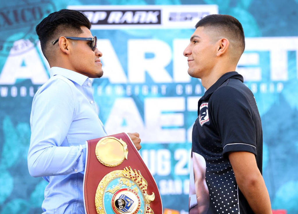 SAN DIEGO — El campeón mexicano Emanuel “El Vaquero” Navarrete está listo para defender su título mundial pluma de la OMB ante un rival que siempre está dispuesto a brindar una guerra. Navarrete (35-1, 29 KOs) se enfrentará a Eduardo “El Gemelo” Báez (21-2-2, 7 KOs) en el evento estelar a 12 asaltos este sábado por la noche en la Pechanga Arena de San Diego.
