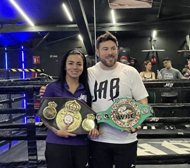 El pasado sábado en las instalaciones de The Jab Pedregal, acompañada del empresario Ricardo Cabañas, dueño del prestigioso gimnasio, Jaky Calvo conmemoró el 8M (Día Internacional de la Mujer) entrenando con jóvenes boxeadoras. Sonriente y con el ánimo por los cielos, la talentosa pugilista reveló que se dispone a regresar a los ensogados, algo que sucederá el próximo sábado 28 de marzo en Tlalnepantla, Estado de México, donde disputará el título Intercontinental del Consejo Mundial de Boxeo (WBC, por sus siglas en inglés) de peso supermosca.