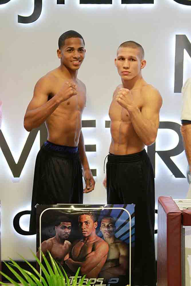 Además, el trujillano Bernard “Bimbo” Lebrón (1-0, 1 KOs), pesó 140 libras para medirse a cuatro capítulos a Osvaldo Vázquez (0-1), que marcó 142 libras; también a cuatro rounds Fauris Capellán (5-1, 4 KOs) pesó 140 libras y su contrario Jonathan García (3-5, 1 KOs) marcó 142 libras; a la misma distancia Emmanuel Santos (1-0) marcó 132 libras y su rival, el debutante Jean Carlos Pantoja pesó 135, mientras, los debutantes Bryan Resto y Jaxel Marrero marcaron 124 y 123 libras, respectivamente.