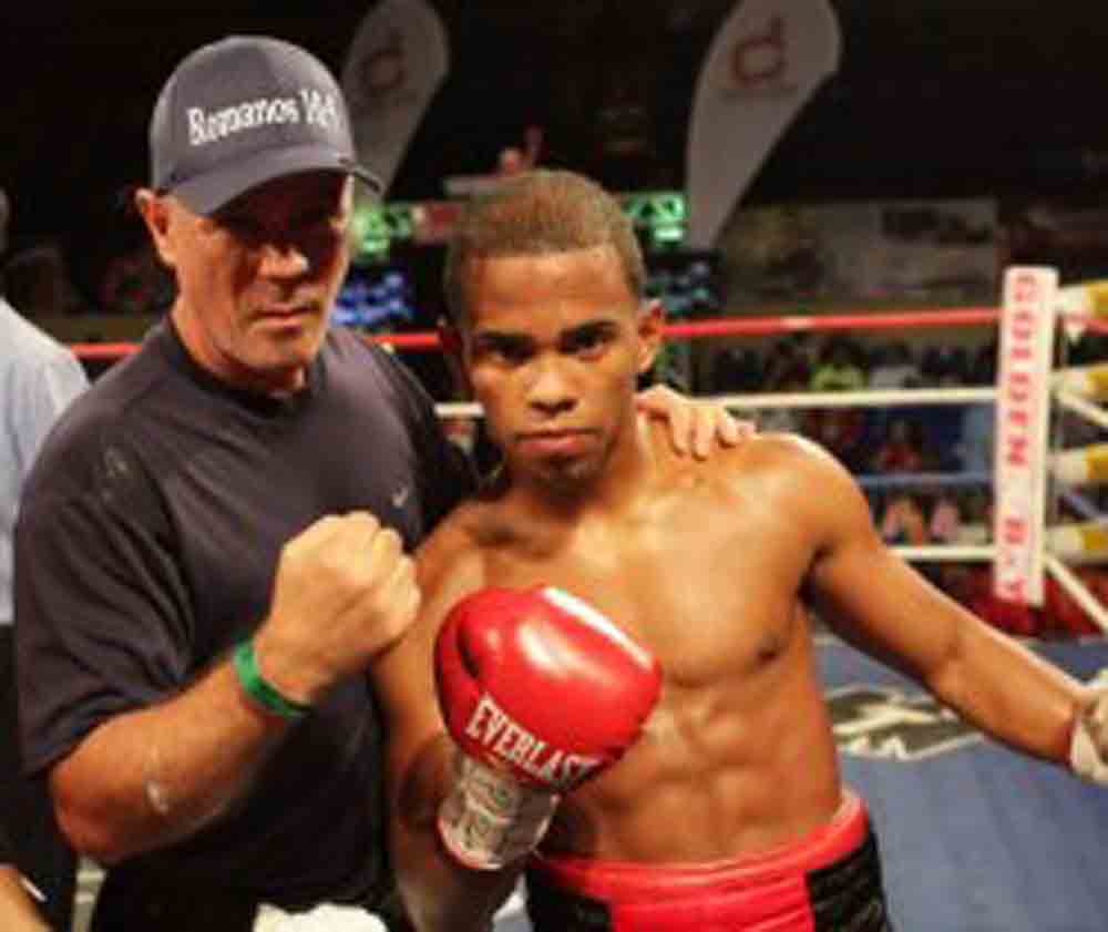 Durante una conversaciٕón que sostuviera con este medio, el entrenador puertorriqueño José Bonilla (en la foto junto al boxeador Braulio Santos) dio a conocer que tres de los más destacados púgiles de su ‘escuadra’ estarán viendo acción en las próximas semanas. Estos son Braulio Santos (pluma) Thomas Dulorme (wélter) y Luis A. Rodríguez (superligero).