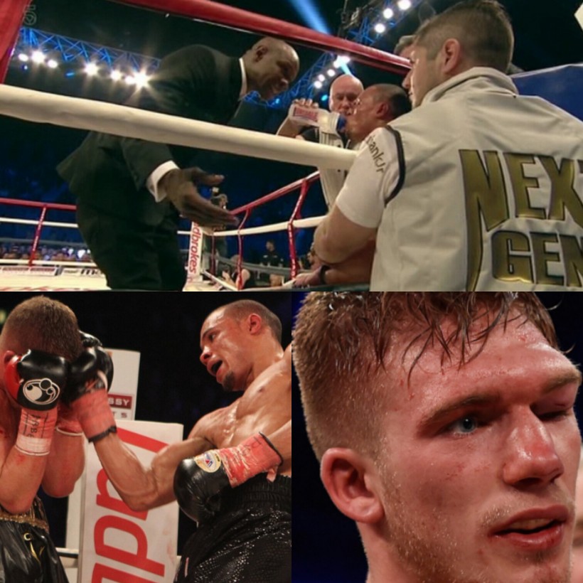 En uno de los combates celebrado el pasado sábado en Inglaterra, se disputó el título supermediano británico que culminó en favor de Eubank Jr. En el interin surgió algo que llamó la atención, Chris Eubank Jr estaba brindando una paliza a Nick Blackwell, este tenía una hinchazón peligrosa en la frente y el ojo prácticamente cerrado. Entonces el minuto de descanso, Chris Eubank, padre se coloca frente a su hijo y le dice: