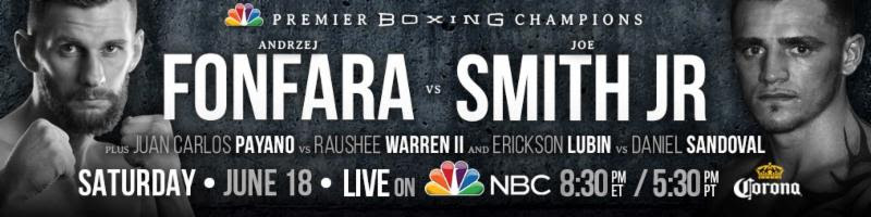CHICAGO (May 13, 2016) – Power-punching fan favorite Andrzej Fonfara (28-3, 16 KOs) will enter the ring against no nonsense New Yorker Joe “The Irish Bomber” Smith Jr. (21-1, 17 KOs) on Saturday, June 18 in a 10-round primetime battle that headlines Premier Boxing Champions (PBC) on NBC from UIC Pavilion in Chicago.